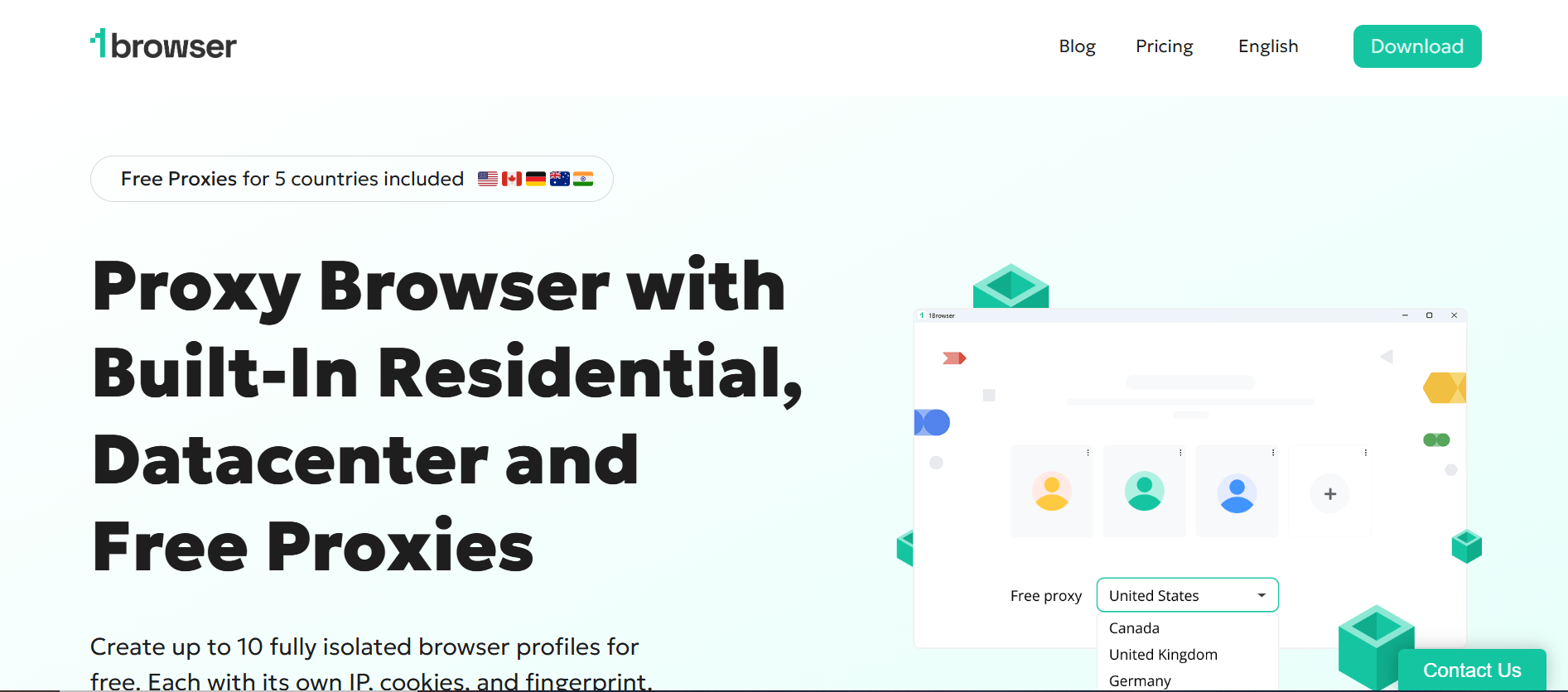 1Browser is a free anti-detect browser (very similar to Google Chrome) with built-in free and paid proxies. Founded in 2023, this service works by modifying your digital fingerprint parameters. Additionally, the built-in IP address provides an extra layer of protection to minimize IP leaks. With 1Browser, your browsing history and cookies are securely encrypted on AWS servers.